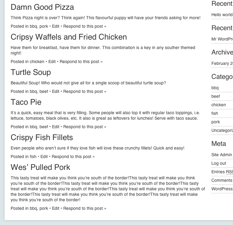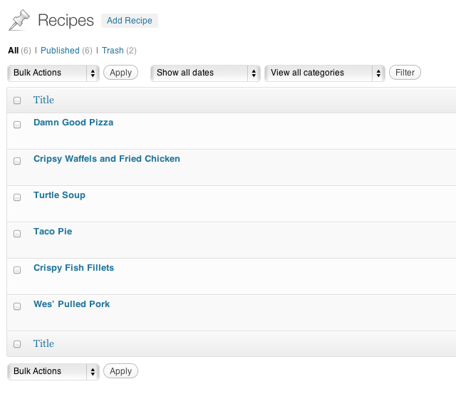 Thats it! Pretty easy, eh? You now have the recipes CPT in the sidebar: