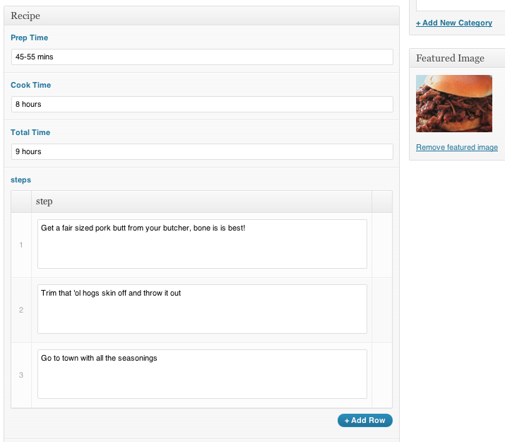 Let's go ahead and add Prep Time, Cook Time and Total Time