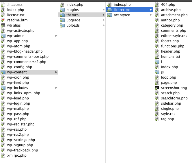 All of the files that control how our site looks are located in /wp-content/themes/llc-recipe